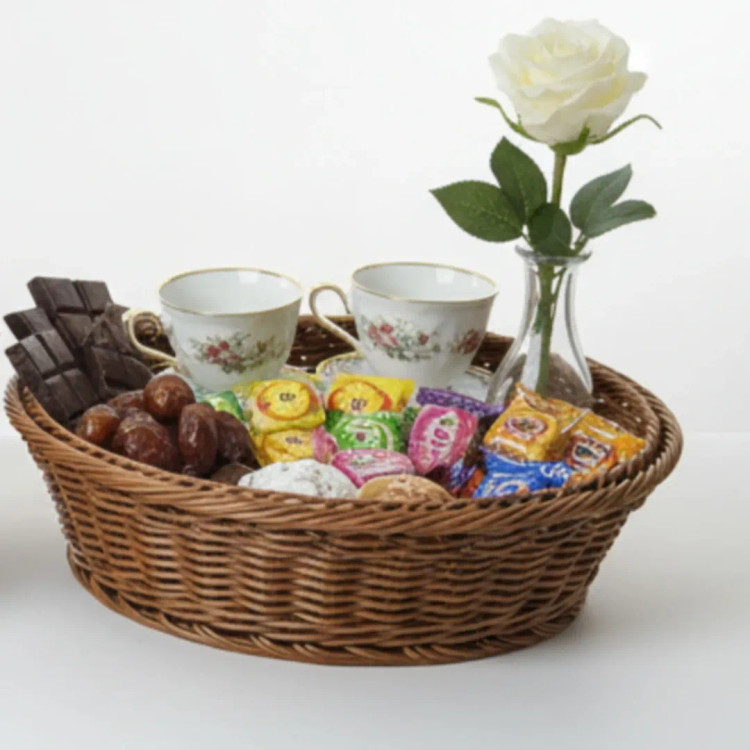سبدهای با کیفیت که برای مناسبتهای مختلف مثل جهیزیه، شب یلدا، هفت سین و سبد سبزی یا سبد میوه و حتی نظم دهنده میتونی استفاده کنی. جنس پلاستیک با بافت حصیری قابل شستشو و انعطاف در رنگبندی. دارای دو سایز میباشد سایز کوچک قطر 24 و ارتفاع 7 سو سایز بزرگ قطر 28 و ارتفاع 7 س میباشد