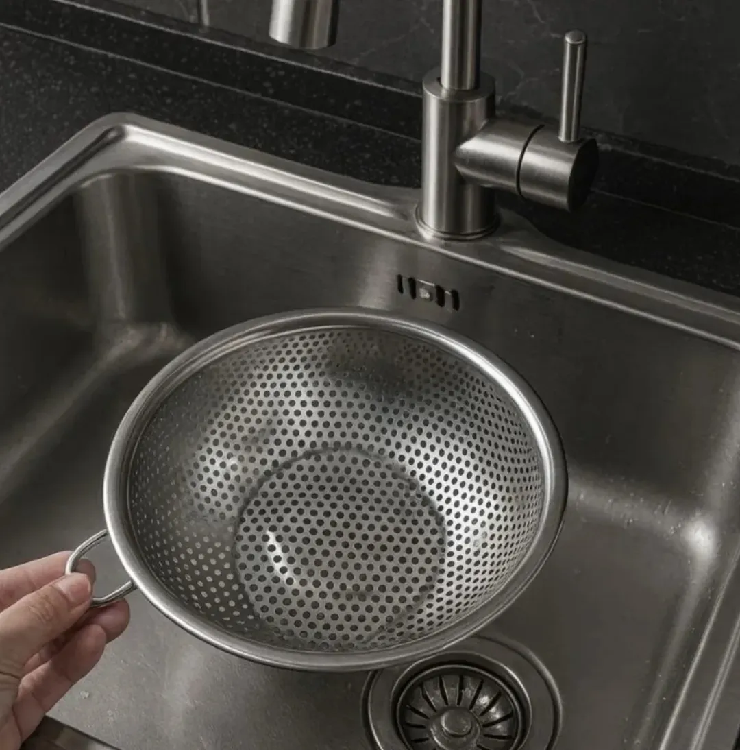 تفاله گیر استیل پانچ یونیک با سوراخهایی که هیچ گونه آشغال و ذرات ریز عبور نمیدهد و آب به راحتی از آن عبور میکند. از لوازم آشپزخانههای با کیفیت.