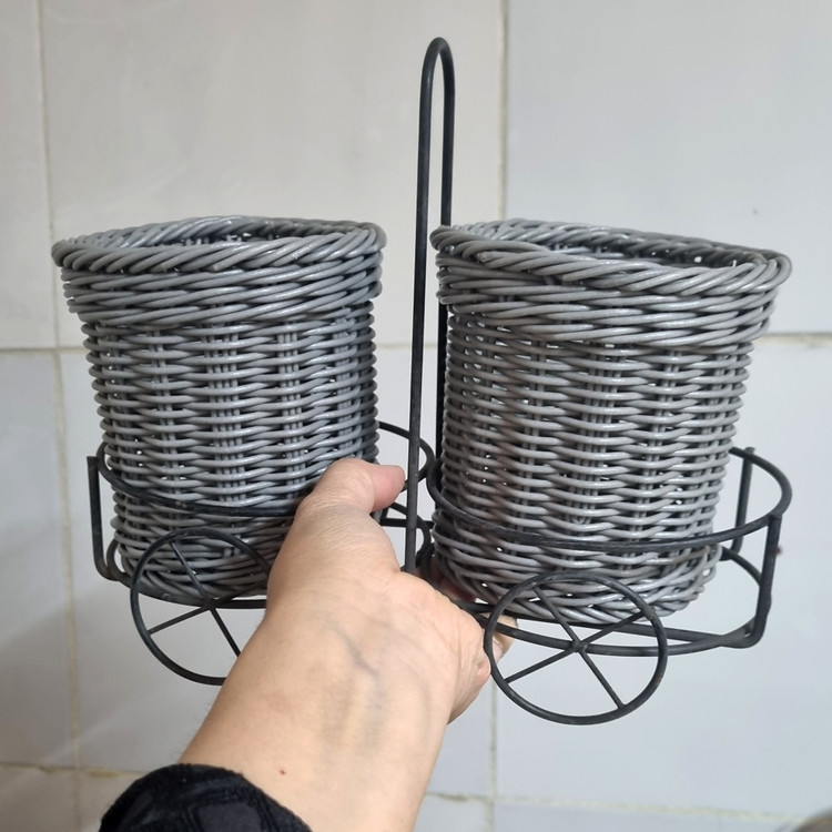 جاقاشقی طرح کالسکه جنسش ترکیب پلاستیک و فلز با بافت حصیری از لوازم آشپزخانه های شیک برای میز ناهارخوری ویا جای کارد و چنگال برای میز پذیرایی ست