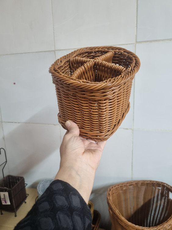 جاقاشقی مکعبی جنسش پلاستیک با بافت حصیری قابل شیتشو مناسب قاشق و چنگال و کارد یا ابزار آشپزخانه و ابزار آشپزی مناسب چیدمان روی میز ناهارخوری و...