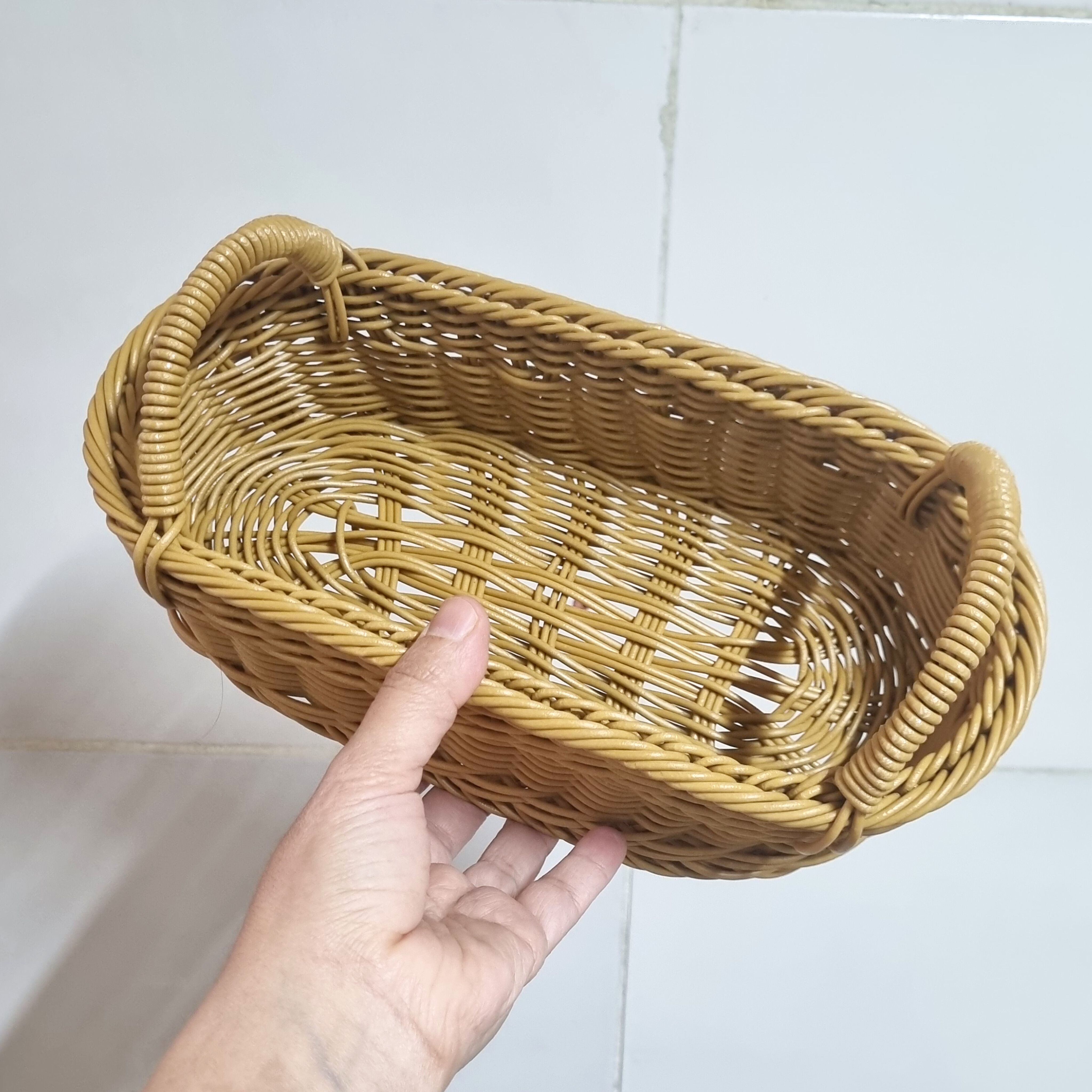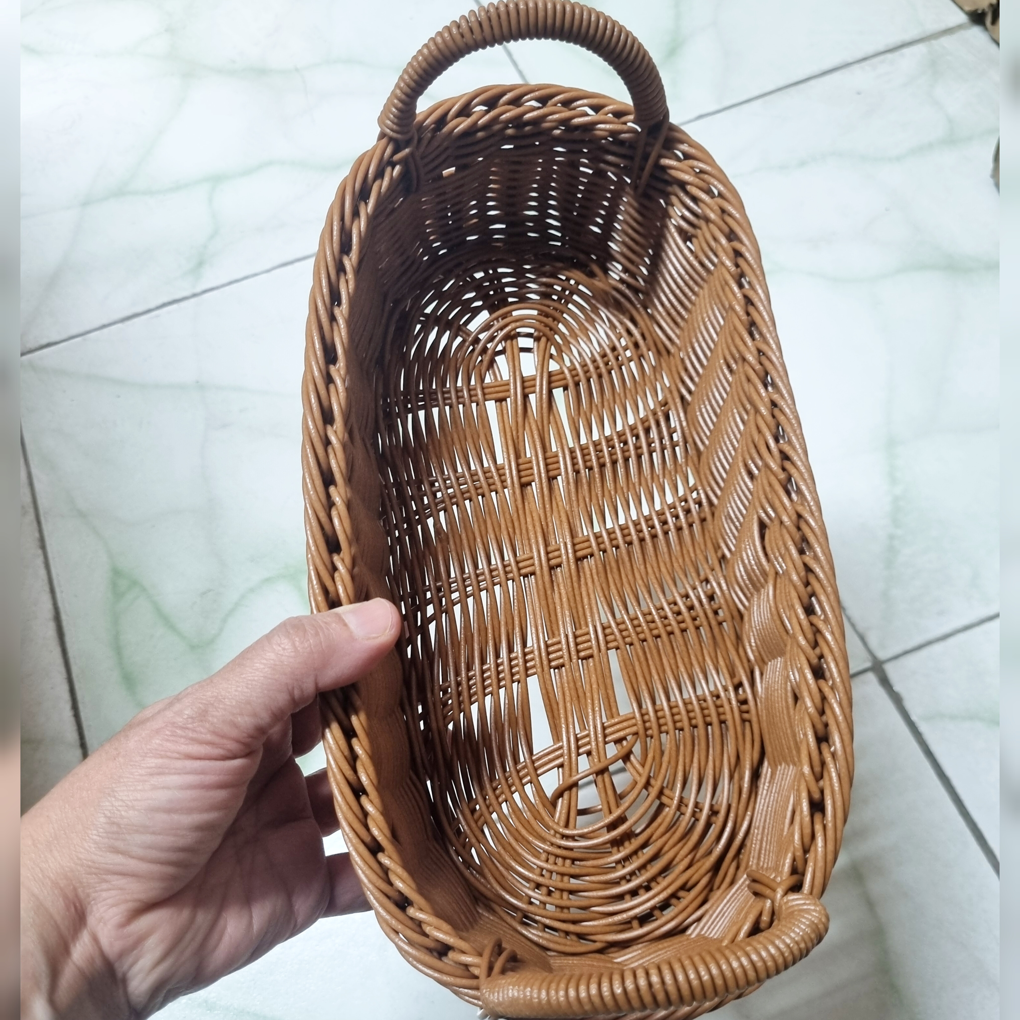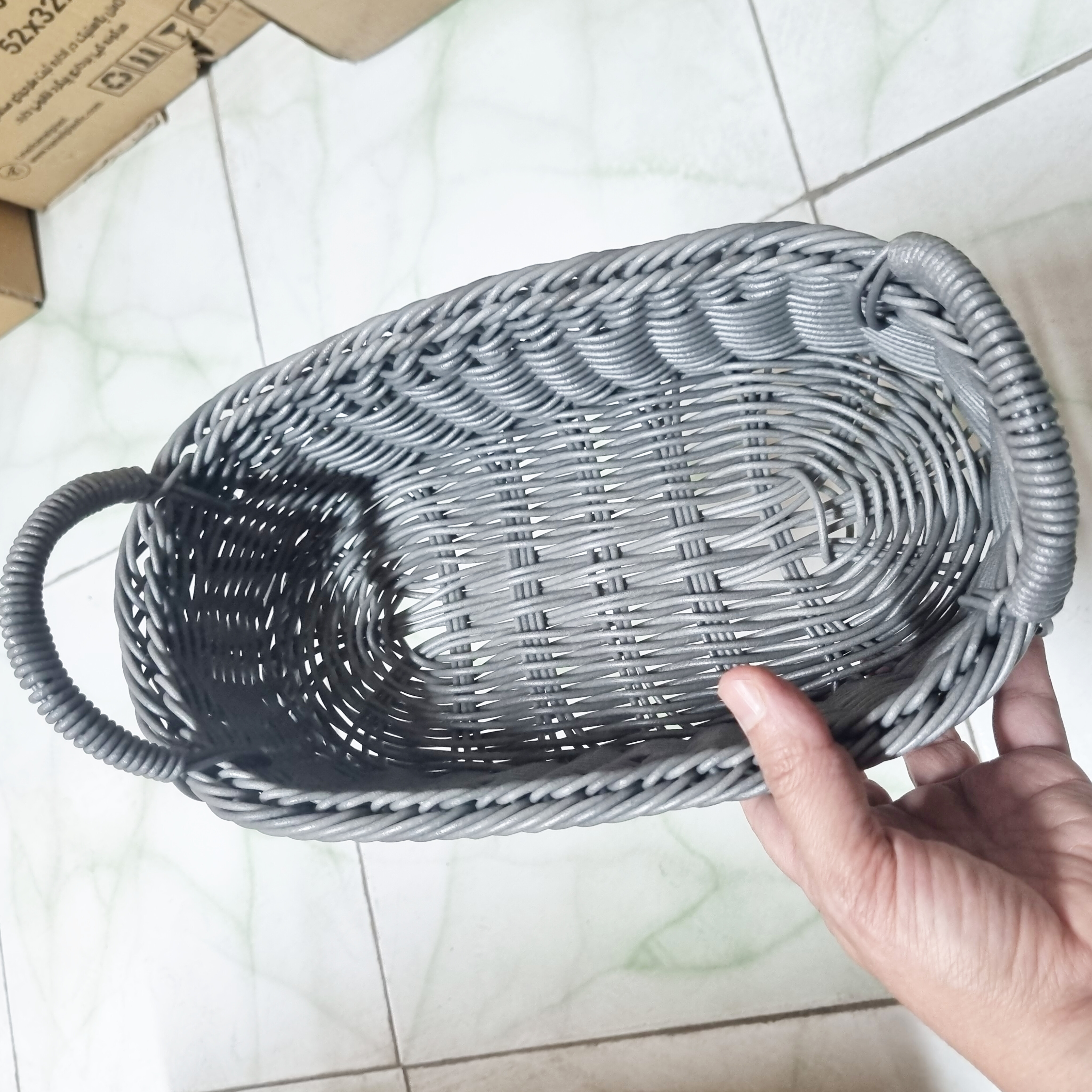 سبد بیضی شکل جنس پلاستیکی با بافت حصیری قابل شستشو در ابعاد طول 27 عرض 14 ارتفاع 7 س مناسب جای قاشق و چیدمان و جهیزیه بسیار شیک