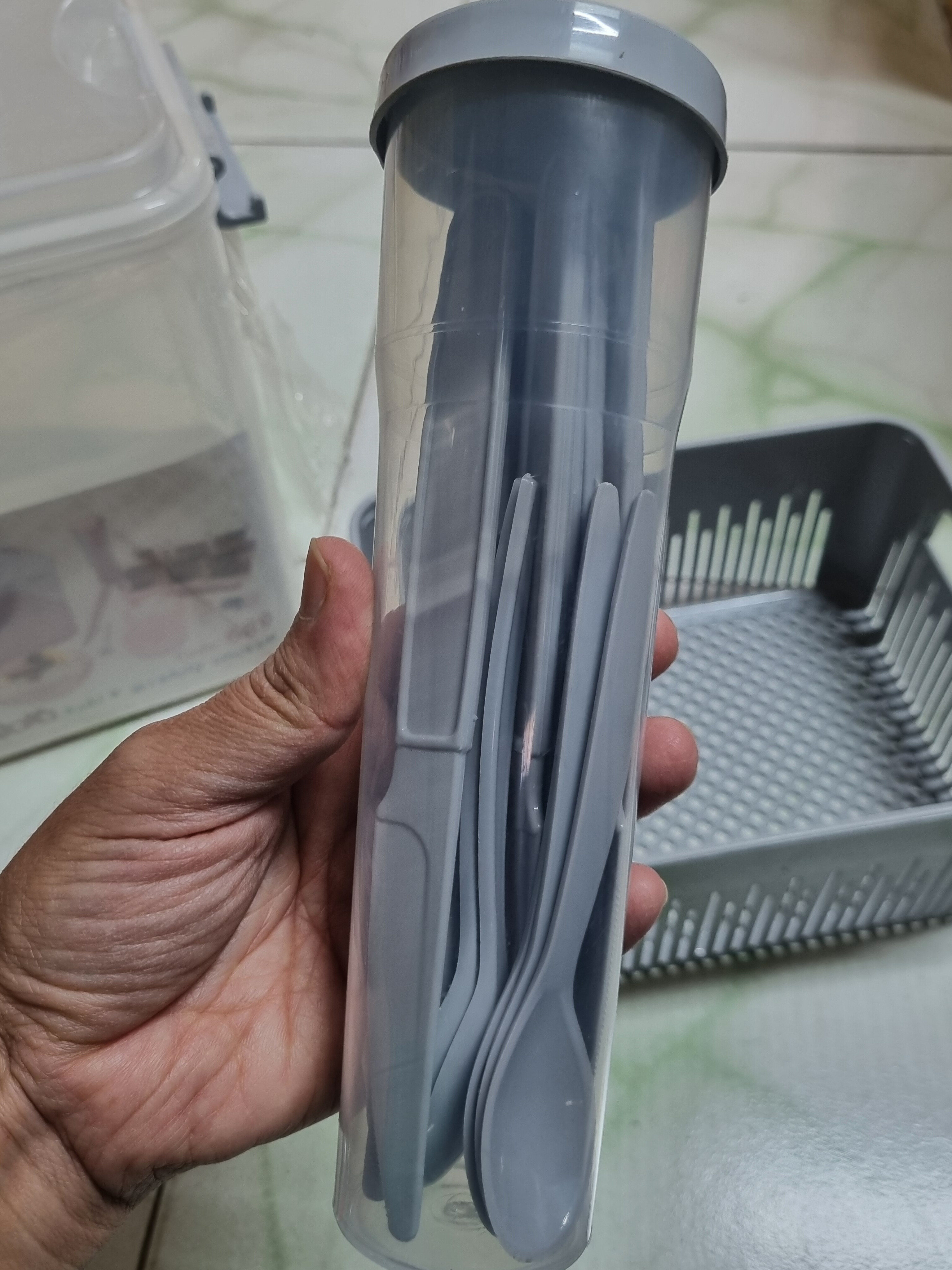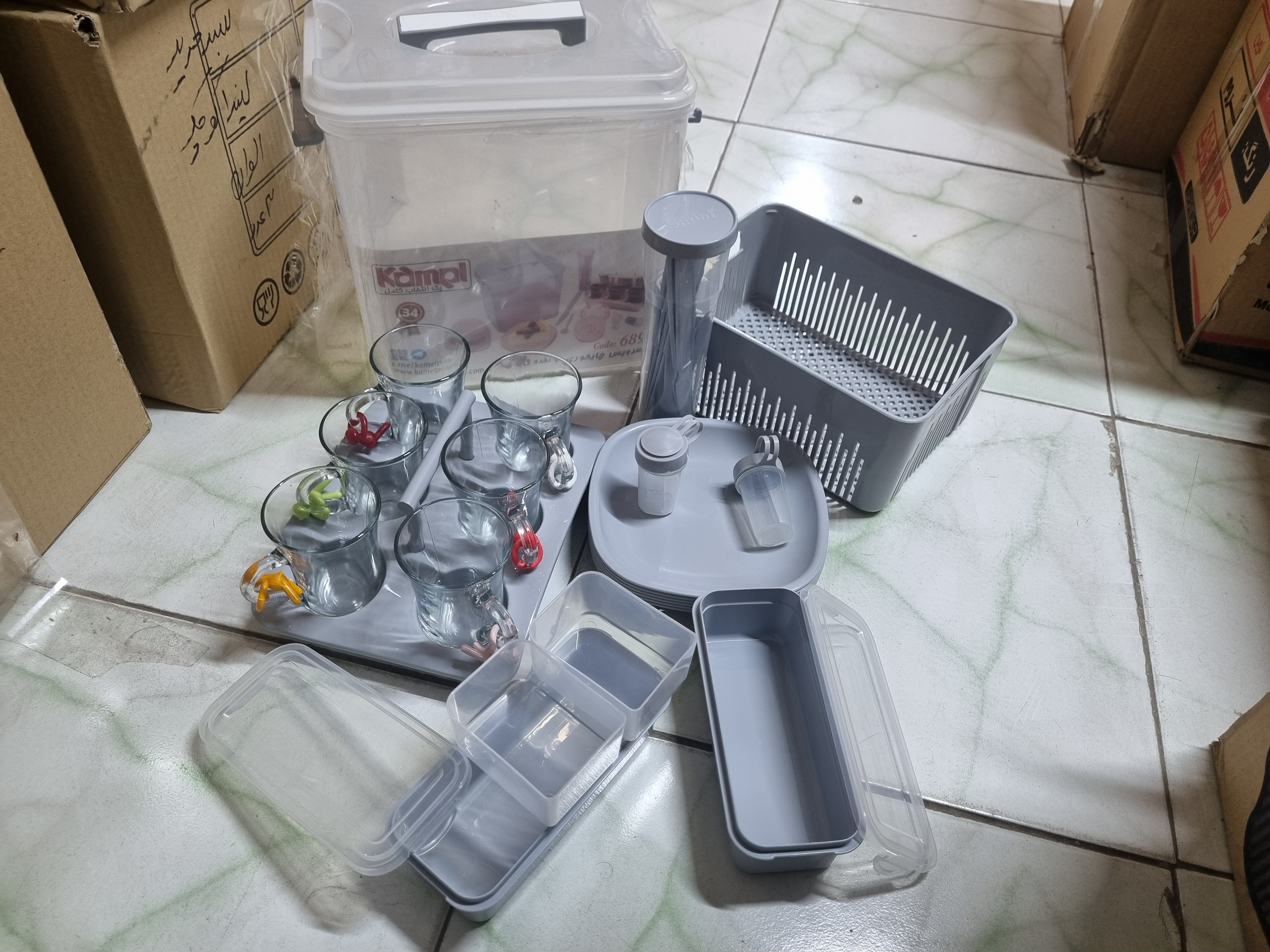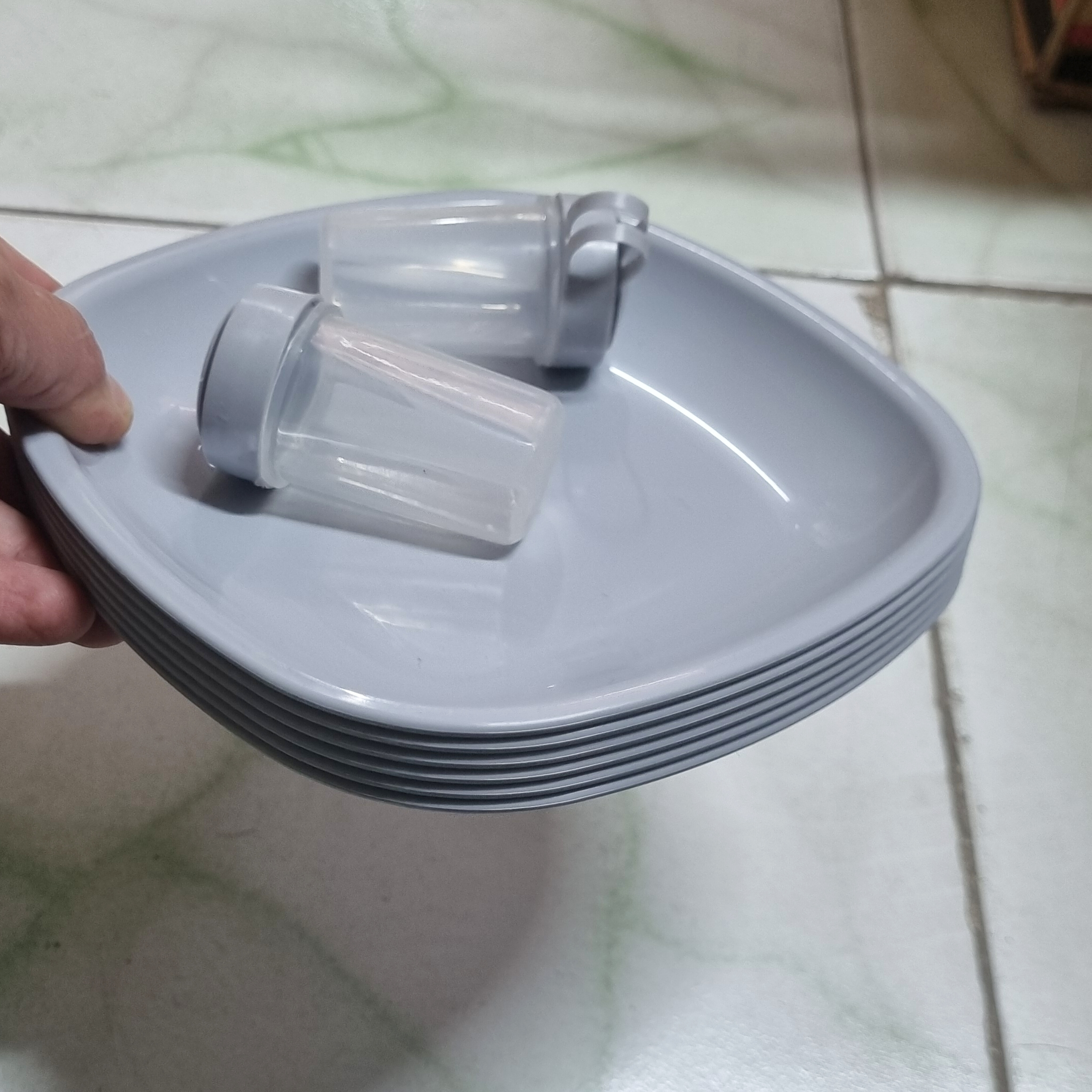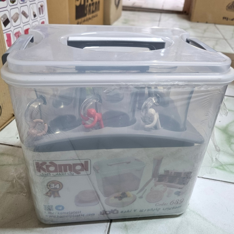 ست چایخوری 6 نفره شرکت کامل پلاستیک که مناسب سفر و کمپینگ و گردش و تفریح میباشد و دارای 6 عدد بشقاب و 6 عدد چاقو و قاشق چایخوری و 6 عدد فنجون بااستند و ادمک نشانگر و یک ظرف دو قسمتی دربدار و یک ظرف دربدار و، یک سبد و یک باکس دربدار و دسته دار