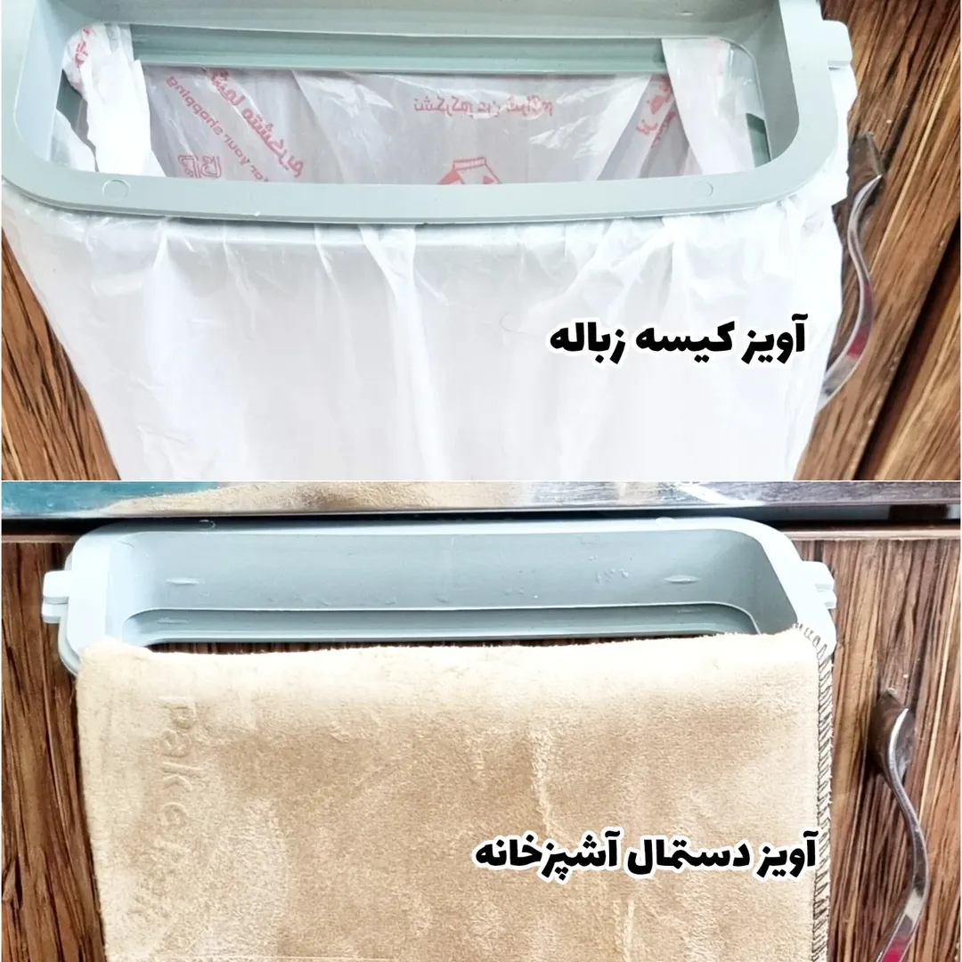 یک محصول کاربردی برای داخل خانه و آشپزخانه، قابل استفاده برای کیسه زباله و حوله و دستمال و دستکش آشپزخانه. دسترسی آسان به کیسه زباله هنگام آشپزی و قابل نصب روی انواع لبه کابینت و حتی میز کار.
