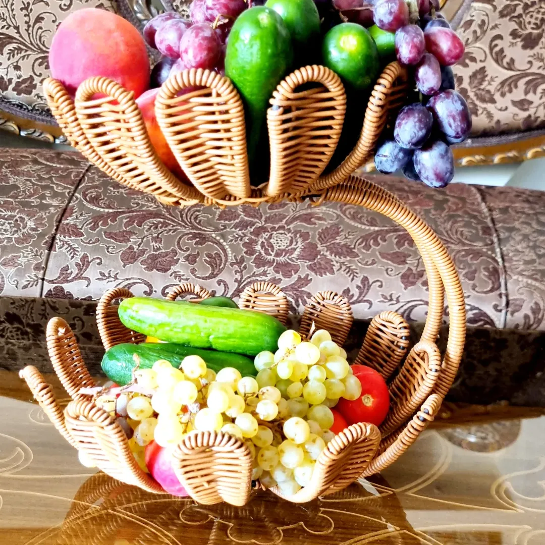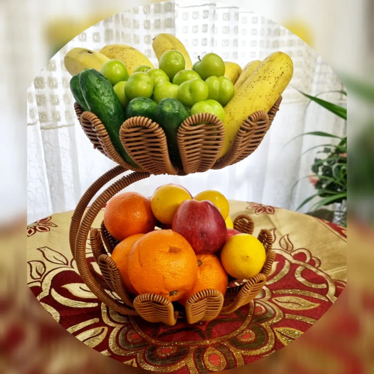 این محصول کاملا نو میباشد و مناسب چیدمان میوه ارایی و جهیزیه است بافتش پلاستیک و بافت حصیری و قابل شست شو می باشد